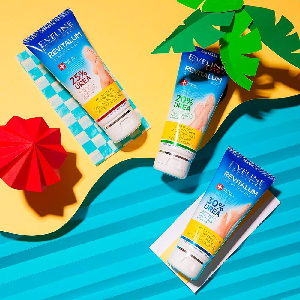 Eveline Foot Cream 30% Urea هو كريم مخصص للعناية بالقدمين شديدة الجفاف والمتشققة، حيث يحتوي على 30% يوريا، مما يجعله أقوى في الترطيب والتقشير مقارنة بالإصدارات ذات النسبة الأقل.