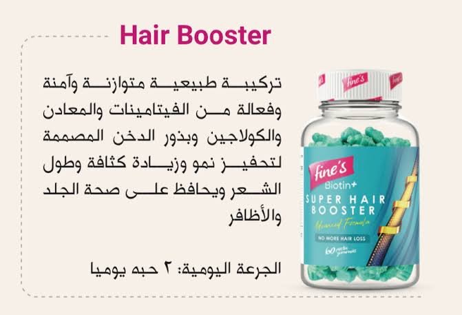 اطلبي fine’s SUPER HAIR BOOSTER BIOTIN الآن، وودعي مشاكل الشعر مع 60 قرصًا من العناية الفعالة والمذاق الرائع! 💖✨