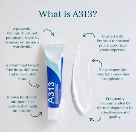 يعتبر A313 المنتج الأكثر مبيعاً في الصيدليات الفرنسية، بفضل تركيبته الفريدة التي تحتوي على “ريتينيل بالميتات” (Retinyl Palmitate)، وهي صورة من صور فيتامين A التي تتغلغل بعمق دون التسبب بتهيج شديد للبشرة.